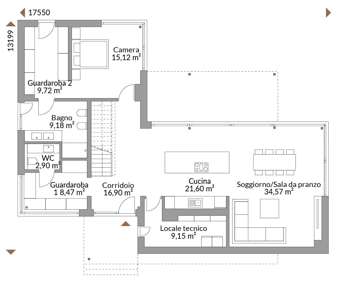 C’è qualcosa di maestoso in questo straordinario edificio. Il corpo centrale si innalza al di sopra di tutto, quasi come se fluttuasse. Questo conferisce leggerezza e armonia all’architettura, mettendo al contempo in risalto gli elementi più funzionali, come l’ingresso coperto e la terrazza.
