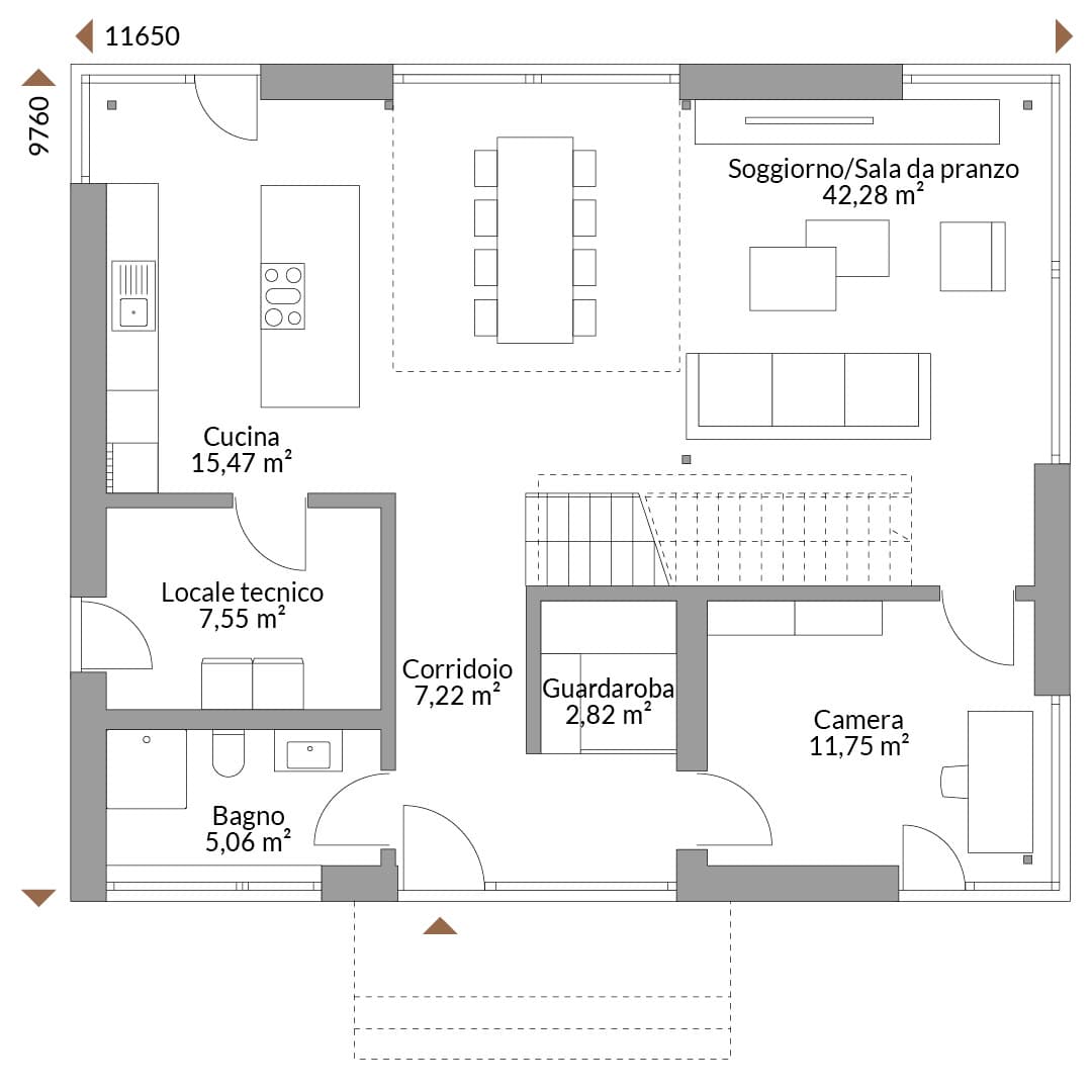 Vision 172 incarna un’architettura raffinata. Linee pulite, un tetto a due falde e ampie superfici vetrate si fondono in un insieme armonioso che emana pura eleganza. Progettata per chi dà valore allo stile e al comfort, questa abitazione trasforma la semplicità in un’esperienza abitativa premium.