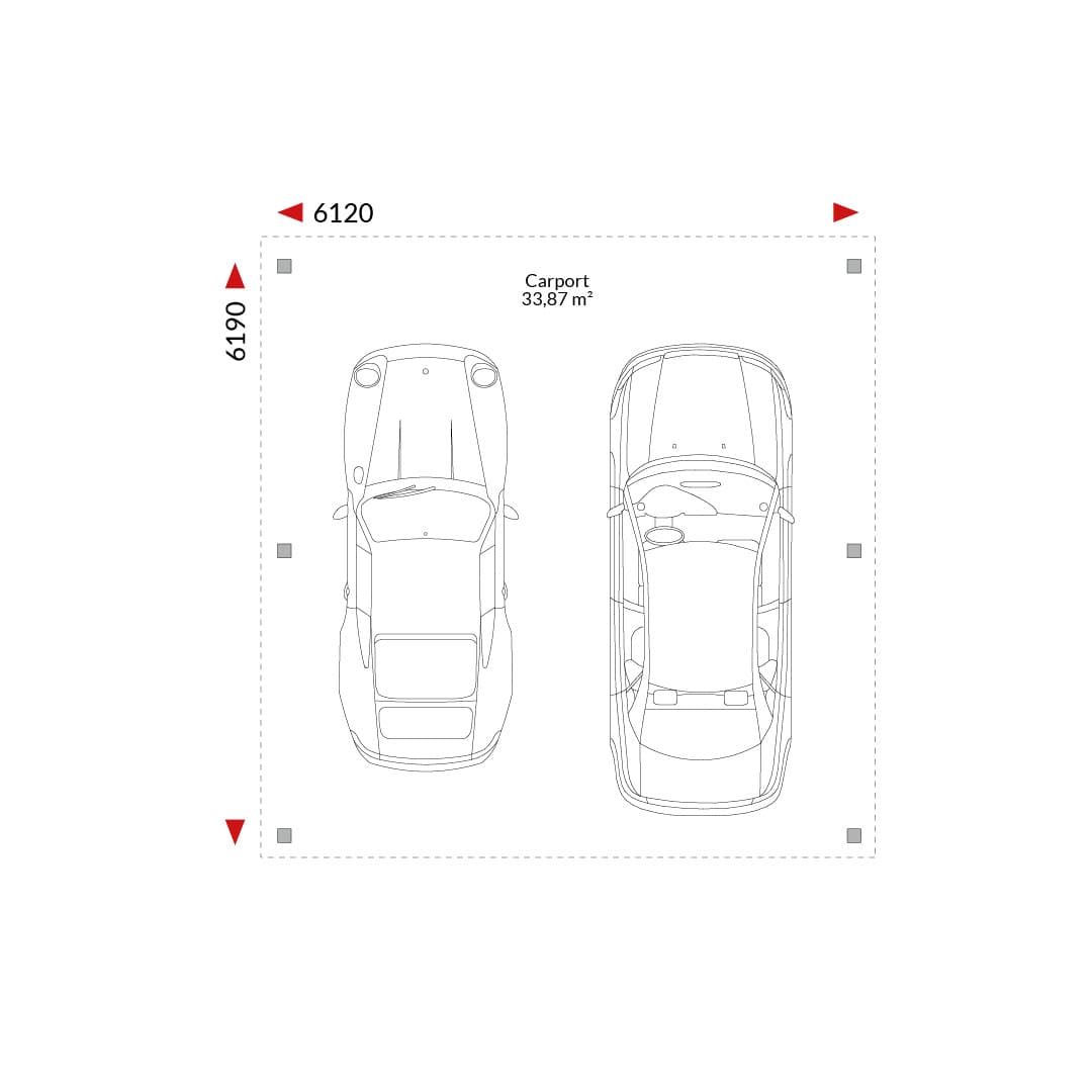 Carport 33.87 m² - Double carport with pent roof, 5,82m x 5,82m (external dimensions).