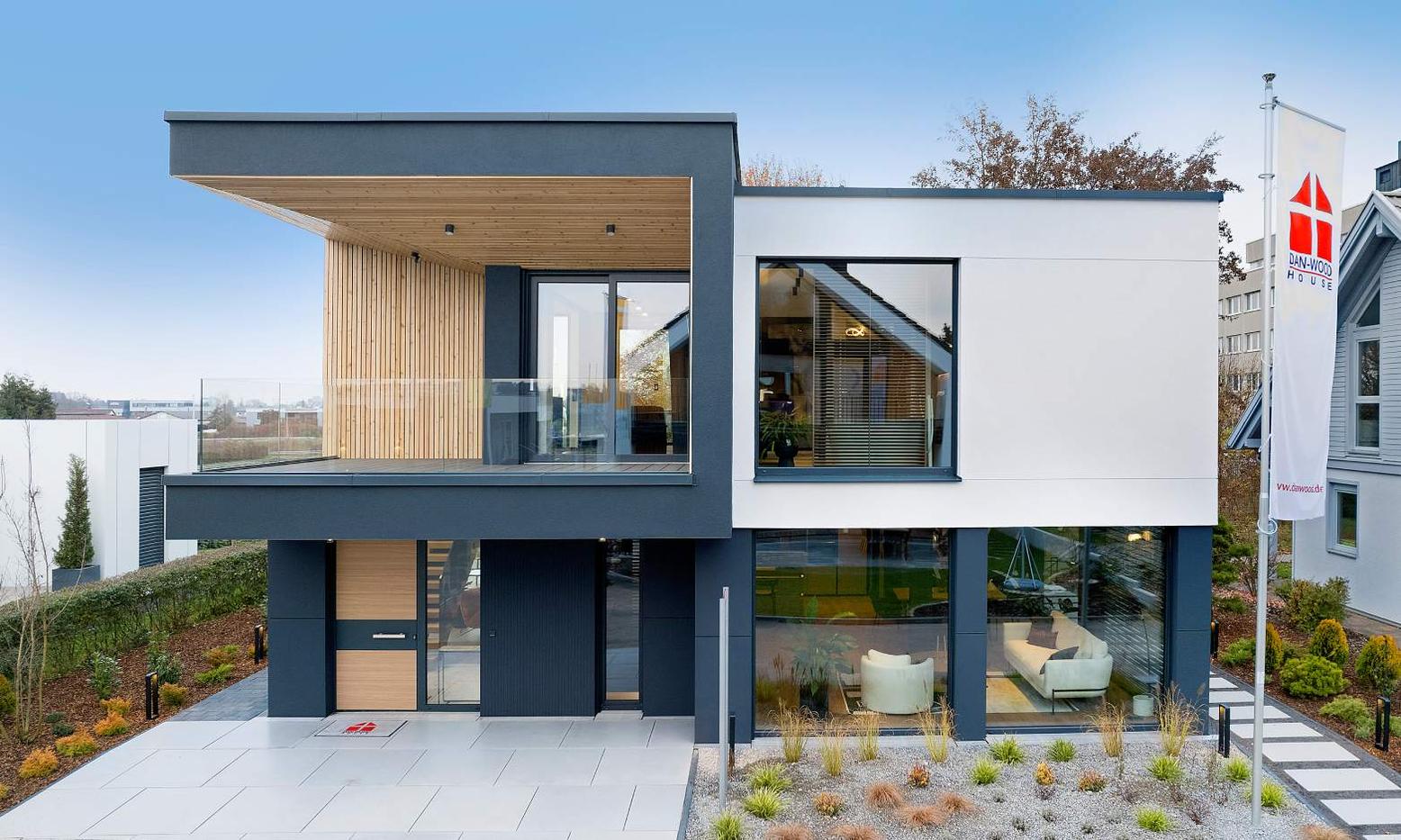 La casa modello NEXT 145, situata nel parco espositivo di Fellbach, vicino a Stoccarda, mostra in modo esemplare come la moderna costruzione modulare possa essere realizzata su due piani con un design d’eccezione. Con una superficie abitabile di 145 m², questa casa colpisce per la distribuzione chiara degli ambienti, l’architettura innovativa e i dettagli curati. Vivere su due livelli – luminoso, intelligente, confortevole. Al piano terra, ampio e luminoso, le zone giorno, pranzo e cucina si fondono in un unico spazio aperto, ricco di luce naturale. Un’elegante scala “sospesa” conduce al piano superiore, dove si trovano una camera da letto, una cabina armadio, un bagno privato, uno studio, un’accogliente finestra a seduta e un balcone. Smart living con stile – la NEXT 145 offre ambienti pieni di luce, tecnologia smart home e la massima efficienza energetica: la scelta ideale per chi desidera costruire in modo moderno, sostenibile e all’avanguardia.